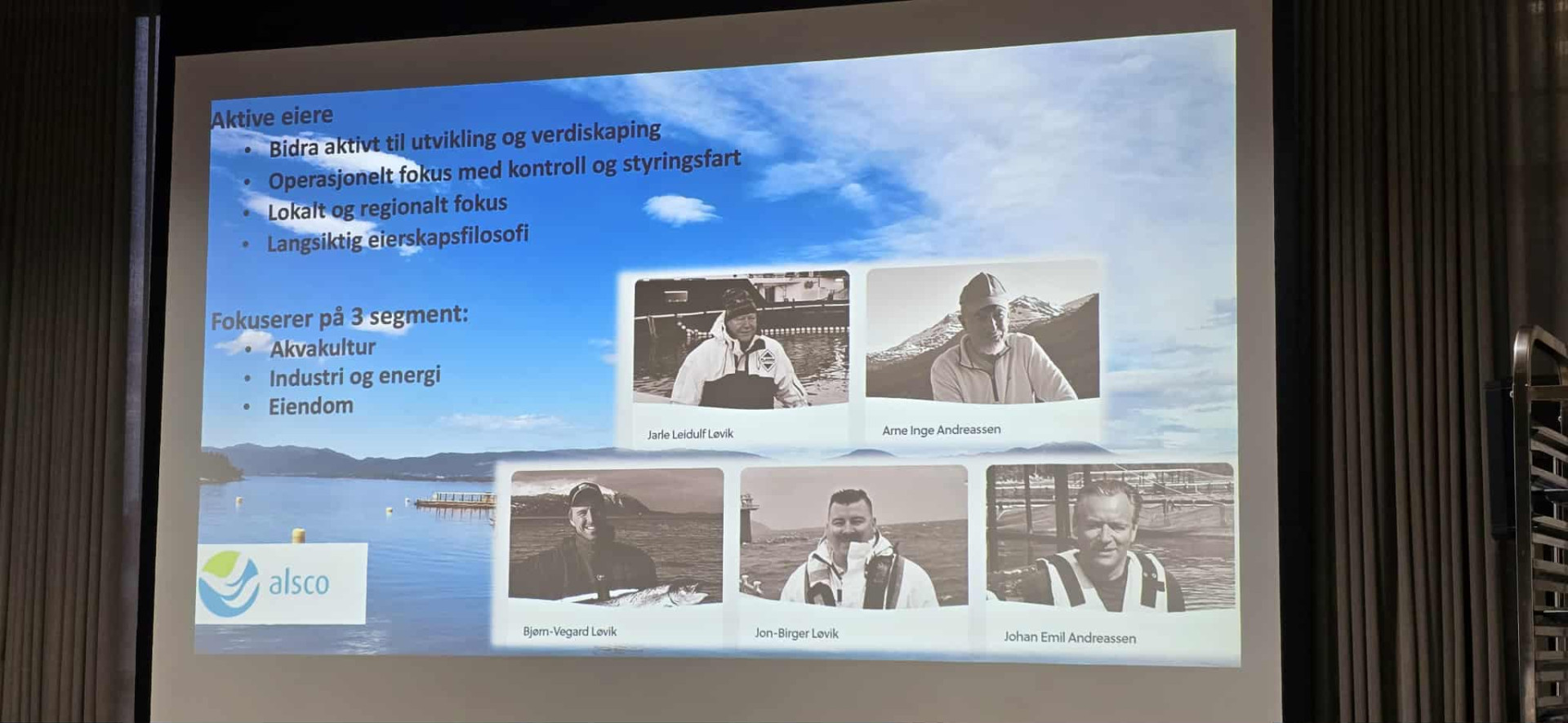 Via fiskeri og og forskningsfartøyer, videre til økologisk lakseoppdrett, har de gjennom opp- og nedturer etter hvert grunnlagt investeringsselskapet Alsco som i dag favner både akvakultur, industri/energi og eiendomsdrift.