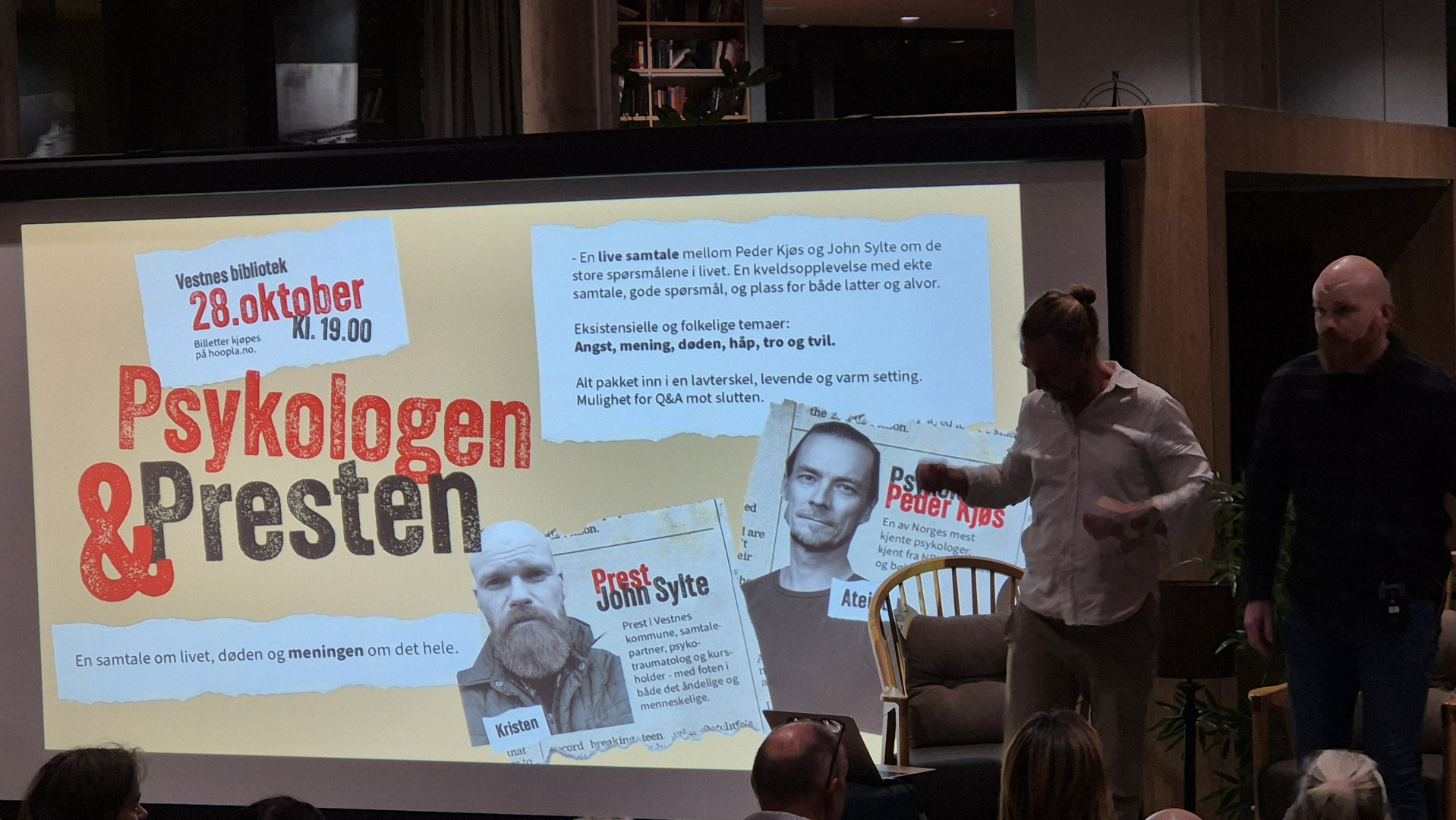 Vestnes Rotary besøkte denne uken Vestnes bibliotek, der psykolog og ateist Peder Kjøs og presten John Sylte inviterte til samtale om livets store spørsmål.